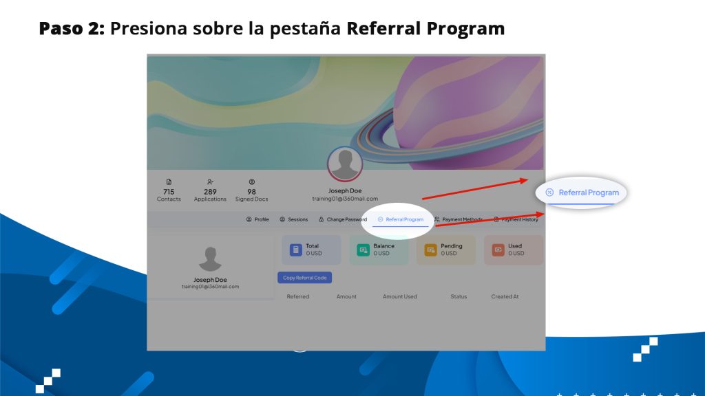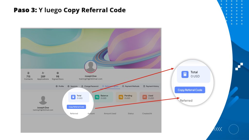 Paso a paso para compartir su Codigo de referido: